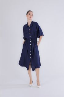 kleid mit elastischem bund und knopfleiste vorne navy