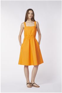 Kleid mit elastischer taille und besonderem v-ausschnitt hinten