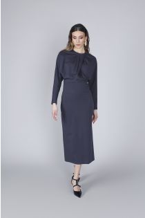 Midikleid aus Stretch-Viskose mit Fledermausärmeln und Falten am Ausschnitt. Elegant und bequem, perfekt für jeden Anlass. Das Model ist 173 cm groß und trägt Größe S. Passform: regulär.