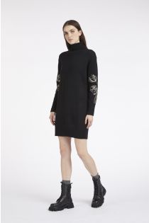 kleid mit hohem kragen und blumenstickerei an den Ärmeln