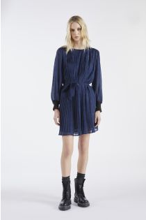 Kleid mit plissierter Vorderseite aus einem lebhaften Georgette-Stoff mit zarten Lurexdetails