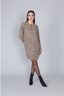 Elegantes, ausgestelltes Kleid aus besticktem Georgette mit Strasssteinen, langen Ärmeln und knielang. Perfekt für Feierlichkeiten und besondere Anlässe. Das Model ist 172 cm groß und trägt Größe S. Passform: regulär.