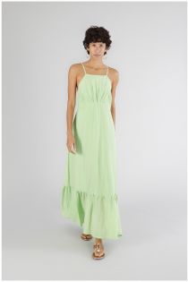 Langes sommerkleid-modell mit tiefem ausschnitt am rücken und volant am saum. kleid aus elegantem musselin aus seidenmischung. dieses kleid mit einer einfachen und klaren linie ist eine perfekte mischung aus romantik und raffinesse die für einen klassischen und eleganten look sorgt.