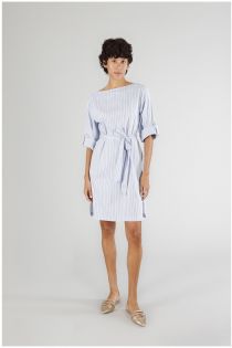 kleid mit u-boot-ausschnitt und schärpe light blue striped