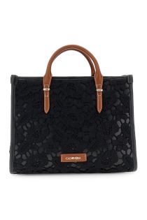 kleine makramee-einkaufstasche mit griffen in lederoptik black