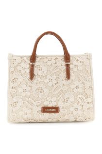 kleine makramee-einkaufstasche mit griffen in lederoptik ecru