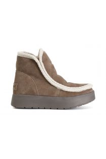 knöchelstiefel mit mokassinbesatz und synthetischem pelz taupe