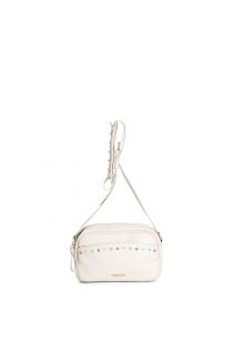 kompakte kameratasche mit cabochonsteinen, mininieten und schultergurt ivory