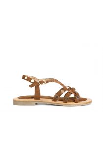 kreuzsandalen aus rauleder und raffiabast tan