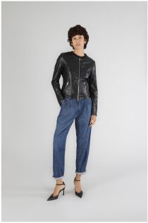 Jacke mit rundhalsausschnitt aus lederimitat mit elastischen stoffeinsätzen für mehr komfort. zentraler reißverschluss. basic-linie die eleganz und einfachheit verleiht.