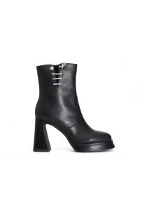 Damen-kunstlederstiefelette mit strassbesetzter schnürung. schuhe im perfekten stil der siebziger jahre. der 95 mm hohe absatz sorgt zusammen mit der 18 mm hohen plateausohle für ein ausgewogenes verhältnis von höhe schönheit und komfort.