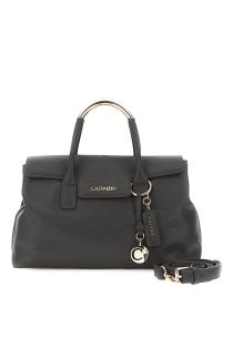 kunstledertasche mit klappe und röhrenförmigen griffen black