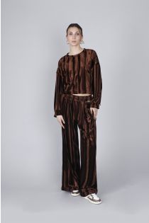 Kurzes Sweatshirt aus schattiertem Samt mit U-Boot-Ausschnitt und verstellbarem Kordelzug am Saum. Perfekt für lässige und bequeme Looks. Normale Passform. Das Model ist 173 cm groß und trägt Größe S.