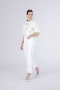 Kurze damen-daunenjacke für den frühling mit eleganter rautensteppung und einem raffinierten knebelverschluss mit schmucksteinen. kurze ärmel leicht und vielseitig – perfekt für die übergangszeit. das model ist 171 cm groß und trägt größe s. passform: normal.