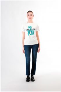 Kurzärmeliges t-shirt aus stretch-baumwolle mit „be you cafenoir“-aufdruck auf der vorderseite.
