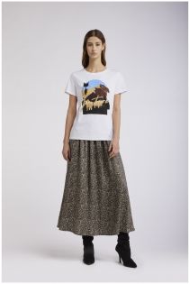kurzärmeliges t-shirt mit "schwarze katze in den bergen"-druck white