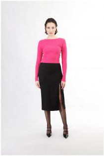 Kurzer enganliegender unterziehpullover mit rippen- und zopfmuster aus viskose-mischgarn. das hemd hat lange ärmel und einen u-boot-ausschnitt. perfekt zu jeder kombination kombinierbar.