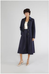 Ein unverzichtbares kleidungsstück in der frühlingsgarderobe. kurzer einreihiger staubmantel aus technischem stoff mit bedrucktem futter. lange ärmel.