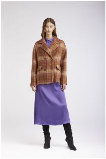 kurzer, zweireihiger mantel mit karomuster multi tobacco panel