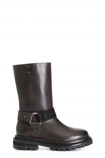 kurzstiefel aus leder mit knöchelriemen dark brown