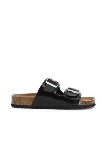 lacklederpantoletten mit zwei riemen und schnalle black