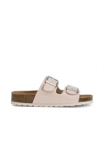 lacklederpantoletten mit zwei riemen und schnalle powder