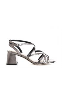 Sandaletten mit laminat-effekt und gekreuzten schnürsenkeln. die gepolsterte innensohle aus echtem leder macht das schuhwerk auch nach stundenlangem tragen noch bequem. der absatz beträgt 50 mm.