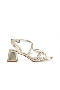 Sandaletten mit laminat-effekt und gekreuzten schnürsenkeln. die gepolsterte innensohle aus echtem leder macht das schuhwerk auch nach stundenlangem tragen noch bequem. der absatz beträgt 50 mm.
