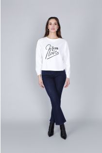Langärmliges Fledermausärmel-T-Shirt aus Stretch-Baumwolle mit Strassstickerei „Le Club Noir“ auf der Vorderseite. Lässiger Stil und reguläre Passform, ideal für moderne Looks. Das Model ist 172 cm groß und trägt Größe S.