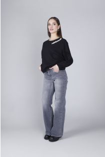 T-Shirt mit U-Boot-Ausschnitt und langen Fledermausärmeln aus Baumwolljersey. Strassapplikationen auf der Vorderseite sorgen für einen Hauch von Glanz. Lässiger Schnitt und normale Passform. Das Model ist 172 cm groß und trägt Größe S.