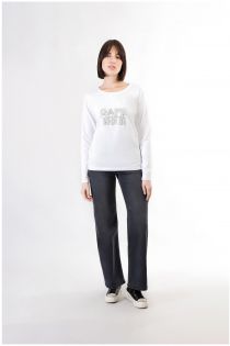 langarm-t-shirt mit strass-logo white
