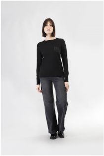 Langärmliges t-shirt aus stretch-baumwolle mit „be noir“-aufdruck auf der vorderseite.