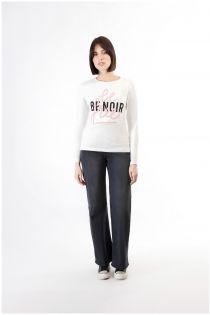 Langärmliges t-shirt aus stretch-baumwolle mit „be noir be free“-aufdruck auf der vorderseite.