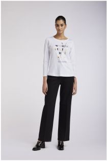 Langarm-t-shirt aus baumwoll-stretch-jersey mit multi-druck cafènoir.