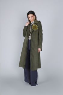 Langer, mantelartiger Mantel mit Taillengürtel und abnehmbarer Federbrosche. Weich, anschmiegsam und modisch – ideal für einen lässig-eleganten Look in der kälteren Jahreszeit. Normale Passform. Das Model ist 173 cm groß und trägt Größe S.