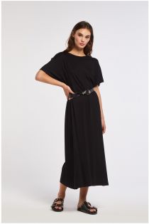 Langes kleid aus viskosejersey mit logo-plaketten auf den schultern