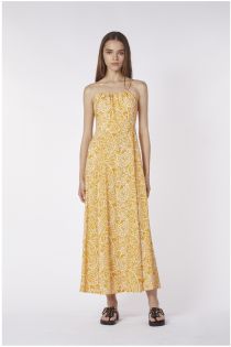 Langes kleid aus viskose-musselin mit kaschmirprint mini-trägern und rückenausschnitt.