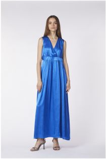 Langes kleid mit überkreuztem ausschnitt aus viskose-satin.