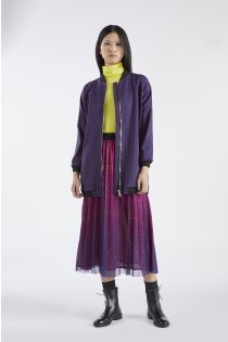 Langes Sweatshirt im Bomberjacken-Stil aus Stretchstoff. Die 2-Nadel-Steppungen wurden mit Kontrastgarn ausgeführt und verleihen dem Stück einen sportlichen Touch. Der Artikel ist gefüttert und dadurch sehr vielseitig, sodass er auch als Jacke in der Übergangszeit verwendet werden kann