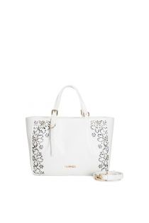 lasergeschnittene einkaufstasche mit blumenmuster, nieten, verstellbaren griffen und abnehmbarem schultergurt white