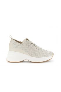 laufschuhe in lederoptik aus gewebtem ripsband beige