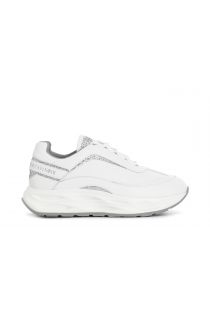 Geschnürter laufschuh mit glitzereinsätzen. seitliche logoprägung mit cafènoir-monogramm. die gummisohle zeichnet sich durch ein zusammenspiel von vertiefungen aus die den schuh einzigartig machen.