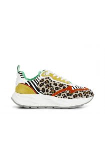 Geschnürter laufschuh mit wildledereinsätzen multi-animalieroptik. seitliche logoprägung mit cafènoir-monogramm. die gummisohle zeichnet sich durch ein zusammenspiel von vertiefungen aus die den schuh einzigartig machen.