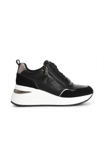 Damen-laufschuhe aus beschichtetem leder mit wildledereinsätzen und seitlichem zierreißverschluss. internes fußbett.