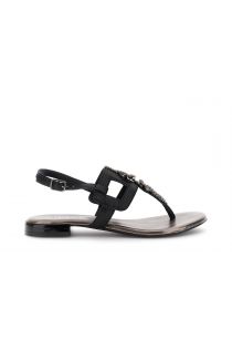 leder-flip-flop-sandalen mit riemen und doppelter strassschnalle black