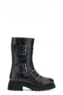 leder-röhrenstiefeletten mit maxi-schnallen black