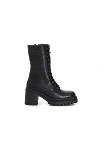 Leder-Stiefeletten mit Profilsohle und 6,5 cm Absatz