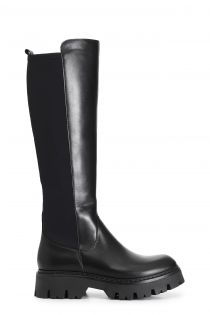 Damenstiefel aus leder und stretchmaterial für einen besonders auffälligen look. die innensohle ist aus leder gefertigt. ein vielseitiges und dynamisches modell ideal zur vervollständigung vieler outfits.