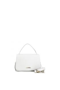Mittelgroße aktentasche aus leder mit langer klappe die in der hand oder mit einem optionalen schultergurt getragen werden kann.