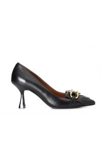 Lederdekolleté mit fransen und horsebit. schmal geschnittener schuh. 70 mm hoher absatz. die innensohle ist aus leder.